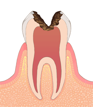 C3(歯髄まで達した虫歯)では虫歯が歯の神経まで達し、自発痛と呼ばれる「何もしていない状態でも痛い」という症状が出ます。歯髄が感染しているため根管治療が必要となります。