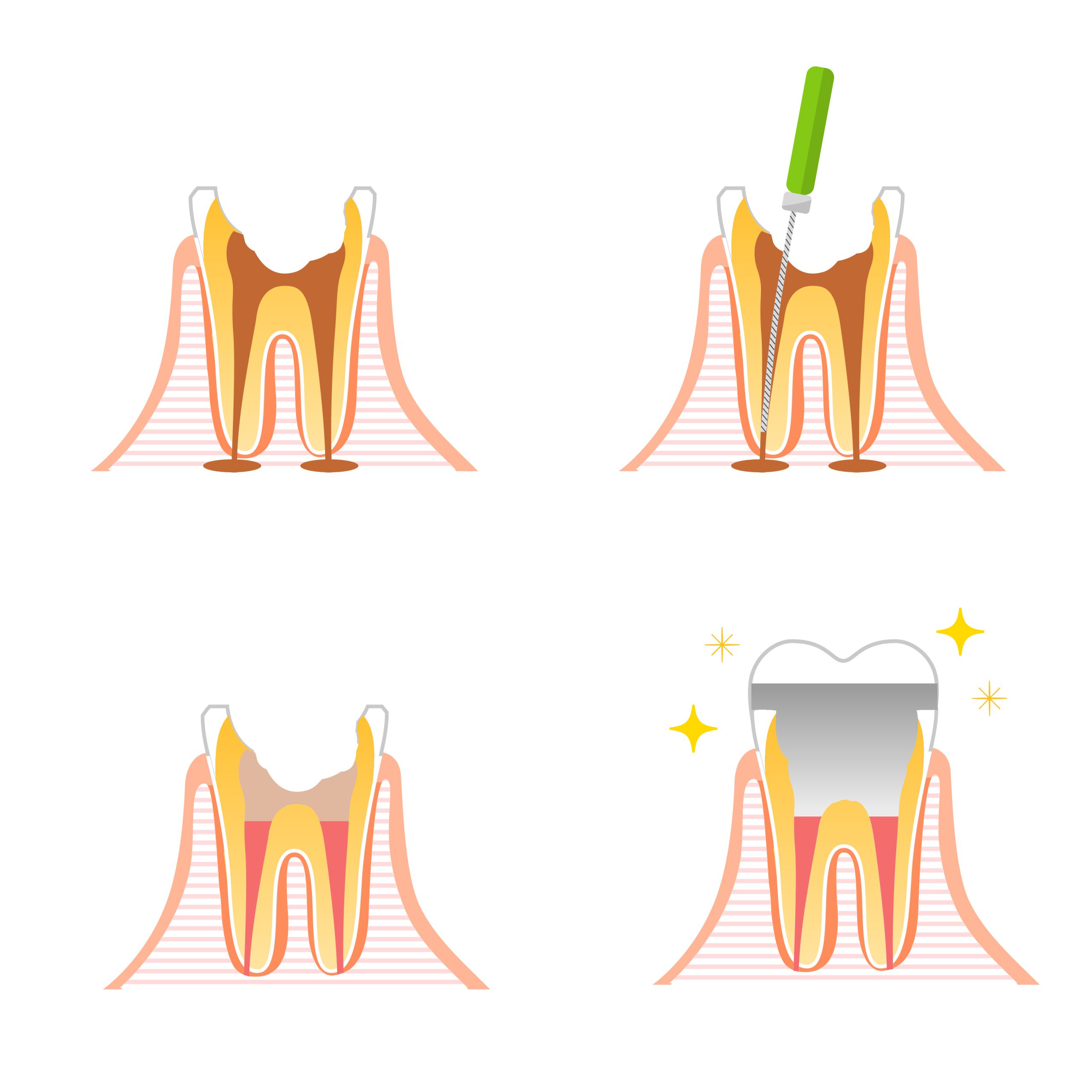 ただし、根の表面にヒビが入っている可能性がある場合は、歯牙再植を採用します。歯を一度抜いて、根の先を切除してから元の位置に戻す方法です。